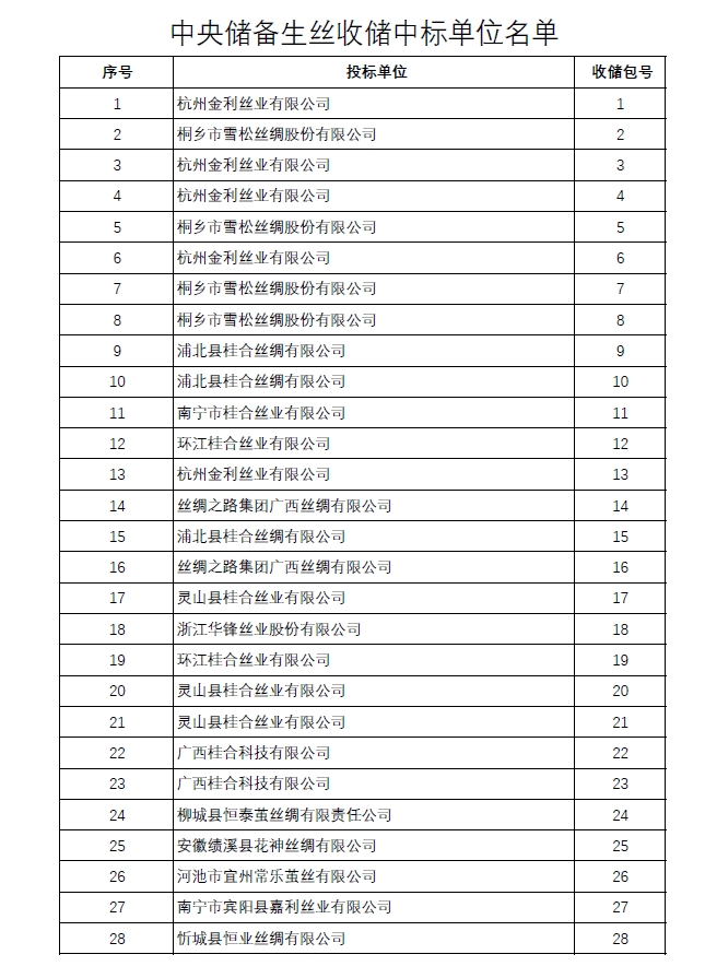 今日,根據(jù)程序,生絲收儲中標企業(yè)名單公布。