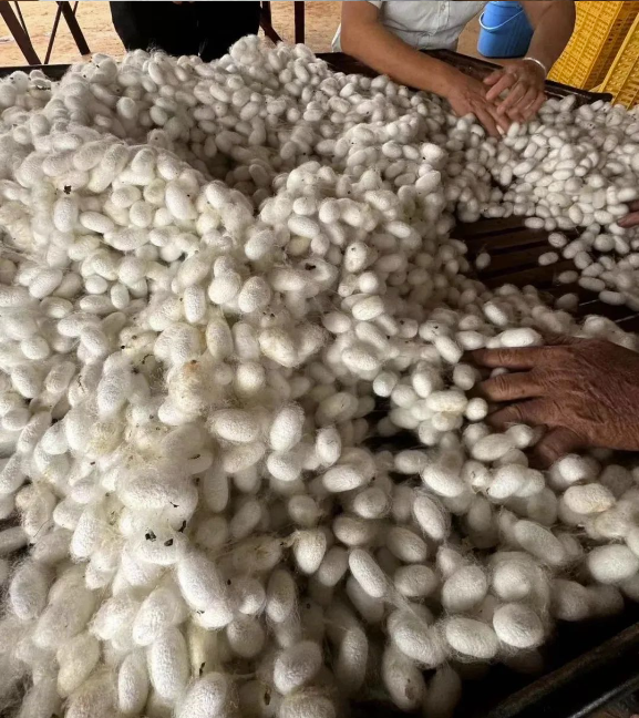 春繭上市上,廣東徐聞首批春繭進(jìn)入上市高峰期。廣東蠶繭占比不大,上市最早。今日徐聞?chuàng)屬?gòu)明顯,質(zhì)量尚好。