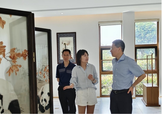 鐘勉一行參觀了“千鶴絲語”蠶桑文化展示中心,參觀途中,薛憶向調(diào)研組詳細匯報了公司發(fā)展歷程、核心業(yè)務布局以及在助農(nóng)帶農(nóng)、促進地方增收方面的顯著成效。重點匯報其歸國后在蠶桑傳統(tǒng)產(chǎn)業(yè)升級中的創(chuàng)新做法,薛憶特別介紹了其歸國后,帶領(lǐng)公司團隊在蠶桑這一傳統(tǒng)古老產(chǎn)業(yè)中注入創(chuàng)新動能的實踐做法,通過引入智能化管理打造智慧桑園,運用生物技術(shù)優(yōu)化蠶種品質(zhì),并積極探索定制化、高附加值蠶桑產(chǎn)品開發(fā),有效破解了傳統(tǒng)生產(chǎn)模式的瓶頸。