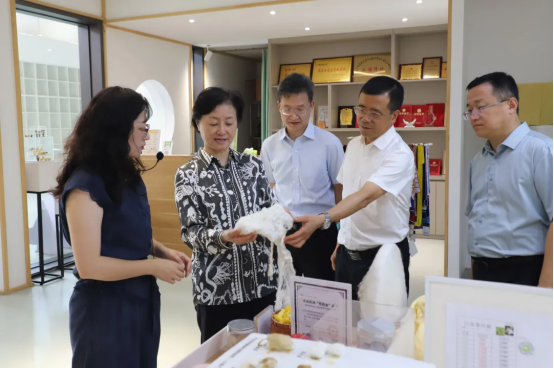 考察組一行走訪調(diào)研了凱喜雅集團(tuán)海寧優(yōu)質(zhì)蠶桑示范基地、蠶-桑-菌-文綜合技術(shù)集成示范基地,聽取了基地負(fù)責(zé)人對蠶?;亟ㄔO(shè)情況的介紹,并參觀了蠶桑文化研學(xué)館??疾旖M對基地“蠶-桑-菌-文”集成示范模式表示肯定,通過推廣多元化應(yīng)用的桑蠶優(yōu)良新品種,結(jié)合高值化利用廢棄桑枝,進(jìn)一步挖掘蠶桑文化研學(xué)深度開發(fā)與應(yīng)用,推動(dòng)了蠶桑文化與教育、旅游、文創(chuàng)等產(chǎn)業(yè)的深度融合,形成了多元化的產(chǎn)業(yè)格局,有效帶動(dòng)區(qū)域經(jīng)濟(jì)發(fā)展,具有顯著社會(huì)效益。
