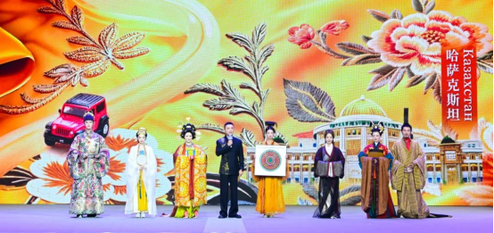 值得一提的是,活動現(xiàn)場《衣錦天下·絲路季》衣錦團成員尼格買提、白冰為中哈友誼獻上禮物。白冰身著仿西漢長沙馬王堆素紗襌衣,與其他模特一同展示中國漢服之美,千年服飾文化韻味盡顯,也寓意著絲路國家的文明在此交融生輝?;顒痈叱碑?dāng)屬盤扣畫《六瑞織春》的亮相,它巧妙融合中國傳統(tǒng)紋樣和中亞五國特色紋樣,以針線為筆生動詮釋了紋樣作為文化符號的獨特魅力,彰顯中華文明的深厚底蘊,更傳遞出新時代絲路文明“各美其美,美美與共”的美好展望,為中哈友誼獻上一份飽含文化深意的珍貴禮物。