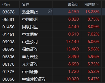 中資券商股大漲,弘業(yè)期貨漲超15%。華泰證券強調(diào),新“國九條”及“1+N”政策體系的逐步落地,正致力于打造利于長期投資的市場生態(tài),證券公司作為資本市場的重要參與者,將迎來廣闊的擴表和展業(yè)空間。