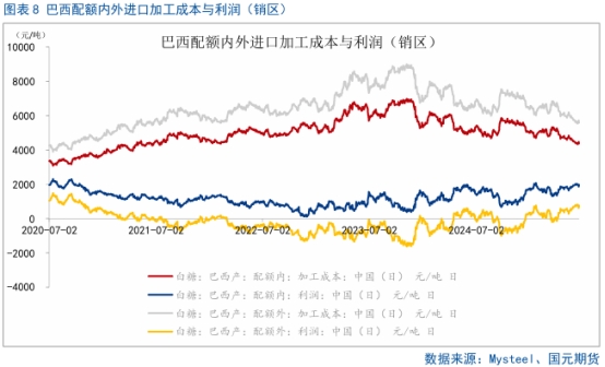 3.3 原糖走低則國內(nèi)配額外進(jìn)口利潤持續(xù)