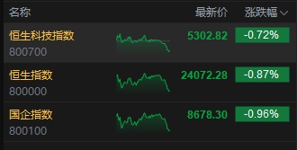 今日港股三大指數(shù)集體收跌,截至收盤,恒生指數(shù)(24072.279, -211.87, -0.87%)跌0.87%,報24072.28點,恒生科技指數(shù)(5302.82, -38.61, -0.72%)跌0.72%,國企指數(shù)跌0.96%。盤面上,科網(wǎng)股漲跌不一,網(wǎng)易、小米集團漲超1%,美團跌超3%,阿里巴巴跌超2%;加密貨幣概念股大漲,新火科技控股(3.1, 0.74, 31.36%)漲超30%;醫(yī)藥外包概念漲幅居前,昭衍新藥(17.4, 1.96, 12.69%)漲超12%;新消費概念股多股上漲,老鋪黃金漲近15%;今日三只新股上市,IFBH、云知聲首日大漲超40%。