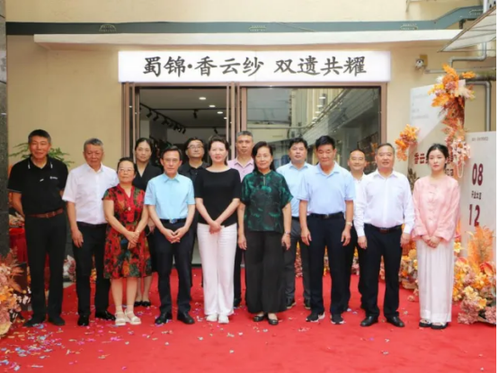 2025年8月12日上午10點(diǎn),由四川省絲綢科學(xué)研究院與廣東絲紡集團(tuán)香云紗公司攜手共建的蜀錦·香云紗成都旗艦店開(kāi)業(yè)典禮于金仙橋路18號(hào)四川省絲綢科學(xué)研究院院內(nèi)隆重舉行。四川省服裝服飾行業(yè)協(xié)會(huì)、四川省絲綢協(xié)會(huì)、四川省蠶業(yè)協(xié)會(huì)、四川省紡織工程學(xué)會(huì)、成都紡織高等專科學(xué)校、廣東省絲綢紡織集團(tuán)香云紗有限公司、四川安娜凱瑟莉服飾有限公司、杭州濤巴京實(shí)業(yè)有限公司及成都蜀錦絲綢有限公司等單位領(lǐng)導(dǎo)與國(guó)家級(jí)非遺傳承人、行業(yè)專家及媒體代表共同見(jiàn)證了開(kāi)業(yè)儀式的重要時(shí)刻。深圳市中農(nóng)智紡供應(yīng)鏈有限公司、四川財(cái)智恒邦實(shí)業(yè)有限公司、廣西柳城縣鴻藝絲綢有限公司、柳州市柳城縣石門山絲綢有限公司、廣西大宗繭絲國(guó)際交易中心有限公司、杭州江南國(guó)際絲綢城等單位贈(zèng)送花籃表示祝賀。