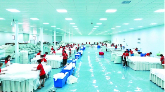 南充銀海絲綢公司成立于 2006 年,是一家專注蠶絲被研發(fā)生產(chǎn)的絲綢企業(yè),近年來,通過不斷研發(fā)創(chuàng)新和市場拓展,產(chǎn)品產(chǎn)銷量連續(xù)多年位居全省第一,成為嘉陵區(qū)絲紡服裝產(chǎn)業(yè)“五朵金花”之一,廣泛受到各級領(lǐng)導(dǎo)和客戶的關(guān)注和好評。由于廠區(qū)建于2011 年,原有房頂和墻壁材質(zhì)保溫隔熱防塵效果差,灰塵散落影響產(chǎn)品品質(zhì),同生產(chǎn)高檔蠶絲被產(chǎn)品遠(yuǎn)不匹配。原有廠房設(shè)備老化、產(chǎn)能不足等問題日益突出,廠區(qū)形象與高端品牌形象嚴(yán)重不符,制約了企業(yè)的發(fā)展。為打破發(fā)展瓶頸、提升產(chǎn)品質(zhì)量,該公司于今年 4 月 3 日啟動改造提升項目,目前改造工程整體完成 60% ,含絲綿廠房、烘干房在內(nèi)的 3000 多平方米標(biāo)準(zhǔn)化無塵車間已完工。該無塵車間作為東西部協(xié)作項目,在東西部協(xié)作機(jī)制的助力下,正加速推動銀海絲綢的產(chǎn)業(yè)升級進(jìn)程,為企業(yè)實現(xiàn)高質(zhì)量發(fā)展注入新活力。