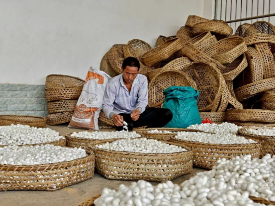 為保障下半年蠶繭生產(chǎn)工作有序推進(jìn),當(dāng)?shù)叵嚓P(guān)部門與企業(yè)聯(lián)動(dòng)發(fā)力,組織駐村蠶技員深入村組蠶室提供技術(shù)指導(dǎo)。特意選擇了抗高溫、抗病力強(qiáng)的雄蠶品種“秋華×平30”發(fā)給蠶農(nóng)飼養(yǎng);提高小蠶共育面,抓實(shí)蠶室蠶具消毒、桑園病蟲害治理等工作,確保蠶健康生長(zhǎng)。收購環(huán)節(jié)則嚴(yán)格執(zhí)行“按質(zhì)論價(jià)、優(yōu)繭優(yōu)價(jià)”政策,鎮(zhèn)村干部深入一線做好服務(wù)協(xié)調(diào),全力保障蠶農(nóng)利益。