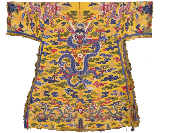 清 康熙黃色緙絲萬壽字云龍紋龍袍料