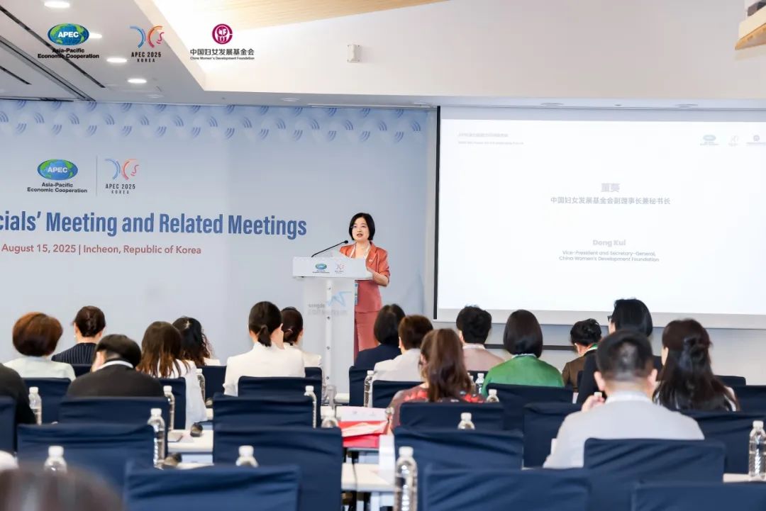 本次圓桌對話是2025年APEC婦女與經(jīng)濟政策伙伴機制(PPWE)會議期間的重要活動,旨在推動性別平等從理念走向行動,凝聚具體框架,為2026年中國APEC峰會奠定基礎,將女性賦權(quán)打造為亞太可持續(xù)發(fā)展的核心引擎。中國婦基會秘書長董葵在主旨發(fā)言中強調(diào),賦能婦女、促進可持續(xù)發(fā)展是基金會的核心工作,并特別提及在文化傳承等領域推動資源協(xié)同,助力共建活力和諧的亞太大家庭。