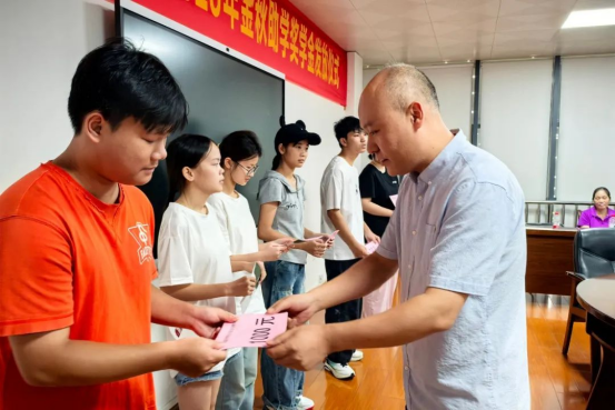 隨后,公司領導為學生們頒發(fā)了“金秋助學”獎學金。全體人員進行合影留念。