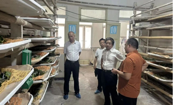 在瀠溪科技園區(qū),代方銀一行先后參觀了四川桑樹種質(zhì)資源圃、現(xiàn)代農(nóng)業(yè)裝備研究中心、蠶桑資源利用研究中心、家蠶種質(zhì)資源保存中心以及家蠶人工飼料養(yǎng)殖實驗室、蠶病分子生物學(xué)檢測實驗室等,對蠶業(yè)所在蠶桑種質(zhì)資源保護利用、蠶桑新品種培育、蠶桑現(xiàn)代農(nóng)業(yè)裝備研發(fā)、蠶桑資源多元化利用產(chǎn)品開發(fā)和成果轉(zhuǎn)化助推四川蠶桑產(chǎn)業(yè)高質(zhì)量發(fā)展等方面取得的成效給予了充分肯定。座談交流會上,劉剛對代方銀一行來所調(diào)研表示熱烈歡迎,隨后從建所歷程、職能職責(zé)、機構(gòu)設(shè)置、人才培養(yǎng)、科技創(chuàng)新、學(xué)科建設(shè)和服務(wù)地方經(jīng)濟社會發(fā)展等方面做了簡要介紹,并圍繞原始創(chuàng)新、高層次人才引進與培養(yǎng)、高能級科研創(chuàng)新平臺建設(shè)、校所合作等提出了合作需求和支持事項。代方銀對蠶業(yè)所立足四川蠶桑產(chǎn)業(yè),在服務(wù)地方產(chǎn)業(yè)發(fā)展和科技賦能鄉(xiāng)村振興所取得的成績表示肯定。并結(jié)合全國蠶桑產(chǎn)業(yè)發(fā)展現(xiàn)狀,對蠶業(yè)所下一步工作提出4點建議:一是認真梳理“十四五”工作總結(jié),科學(xué)謀劃“十五五”目標,盤活現(xiàn)有人才、平臺與科技資源,奮力打造國內(nèi)一流蠶業(yè)科研強所;二是重點開展突破性成果培育和應(yīng)用,擴大在行業(yè)內(nèi)的影響力和競爭力;三是健全產(chǎn)學(xué)研用協(xié)同創(chuàng)新機制,加快雙方在專業(yè)學(xué)位研究生培養(yǎng)、蠶桑學(xué)四川省重點實驗室或川渝聯(lián)合共建重點實驗室等工作的推進;四是注重蠶桑絲綢文化的弘揚與宣傳,尤其是中國綢都和蜀錦文化的挖掘,增強文化軟實力。
