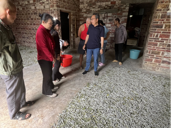 在養(yǎng)殖現(xiàn)場,特派團專家仔細查看了蠶寶寶的生長發(fā)育情況,對養(yǎng)蠶過程中的溫濕度控制、桑葉喂養(yǎng)、蠶沙清理等關(guān)鍵環(huán)節(jié)進行了手把手教學;在桑園里,專家們針對桑樹的修剪、施肥、病蟲害綠色防控等技術(shù)進行了技術(shù)指導,并向農(nóng)戶傳授提高桑葉品質(zhì)和產(chǎn)量的實用技巧。