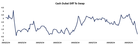 ⑷現(xiàn)迪拜對(duì)互換的溢價(jià)在9月迄今每月上漲52美分/桶,與預(yù)測(cè)一致。