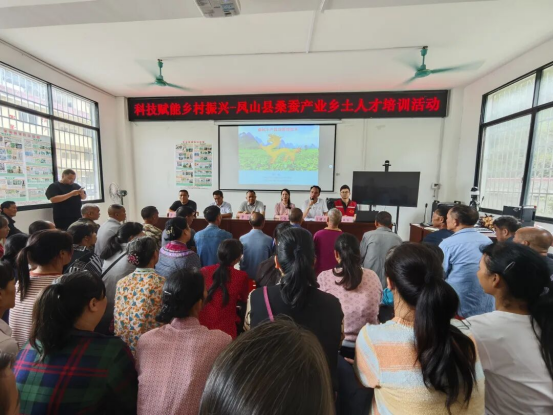 9月28—29日,科技賦能鄉(xiāng)村振興服務(wù)專項系列活動在廣西鳳山縣開展。廣西科普傳播中心、廣西農(nóng)技協(xié)聯(lián)合廣西蠶業(yè)技術(shù)推廣站、鳳山縣科協(xié)等單位組成專家服務(wù)團,通過實地調(diào)研、技術(shù)培訓(xùn)、座談交流等舉措,為當(dāng)?shù)厣PQ產(chǎn)業(yè)注入科技動能。當(dāng)?shù)厣PQ產(chǎn)業(yè)相關(guān)部門負責(zé)人、技術(shù)人員及從業(yè)人員等110余人參加活動。