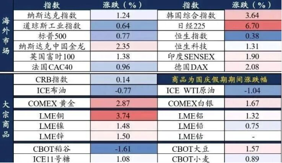 長假期間,海外大事不斷,三個事件為重。一是美國政府關(guān)門,二是日本自民黨總裁選舉落地,三是法國總理辭職。美國政府關(guān)門、法國總理辭職等事件,加劇市場不確定性,推升黃金、加密貨幣等資產(chǎn)的漲幅,金價連創(chuàng)新高,COMEX金一度破4000美元/盎司。日本新首相政策利空日元、日債,利多日股。
