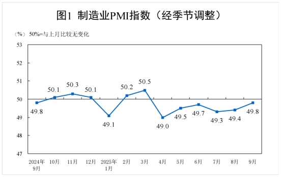 9月份,制造業(yè)采購經(jīng)理指數(shù)(PMI)為49.8%,比上月上升0.4個百分點,制造業(yè)景氣水平繼續(xù)改善。