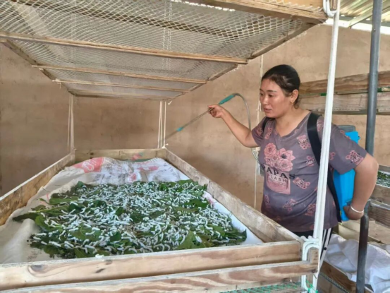 更讓農(nóng)戶滿意的是,養(yǎng)蠶產(chǎn)業(yè)“門檻低、成本少、見效快”。桑樹是多年生作物,一次栽種可連續(xù)采收數(shù)年,日常人工管理耗時少、投入成本低,管護得當,栽種當年就能喂養(yǎng)幼蠶;幼蠶僅需20余天便可抽絲成繭、打包售賣,真正實現(xiàn)“短平快”收益。每到收獲季,陽光下的農(nóng)家院里總是一派熱鬧景象。村民們分工協(xié)作,收蠶、裝箱,豐收的喜悅寫在每個人臉上。