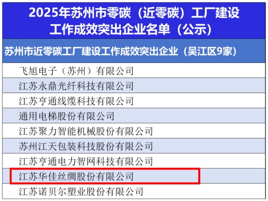 9月28日,蘇州市工業(yè)和信息化局對(duì)全市零碳(近零碳)建設(shè)工作成效突出的企業(yè)予以公示,全市共有44家企業(yè)上榜近零碳工廠名單,華佳絲綢憑借在綠色制造和可持續(xù)發(fā)展方面的卓越實(shí)踐成功入選。