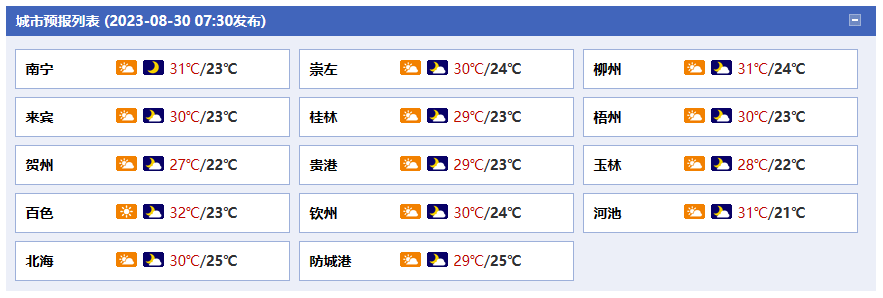 廣西氣象臺(tái)30日05時(shí)發(fā)布預(yù)報(bào):