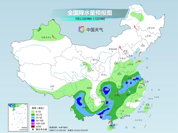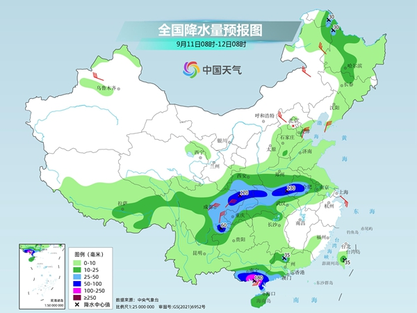 本周伊始,我國南方地區(qū)強降雨依然頻繁?!昂?睔堄鄿u旋的中心目前經(jīng)進入廣西境內(nèi),今天(9月11日),廣西東南部沿海以及廣東西南部部分地區(qū)將會出現(xiàn)大暴雨;另一片強降雨區(qū)域則集中在華西地區(qū),昨天四川盆地西部和北部等地雨勢已較明顯,今天隨著冷空氣南下,降雨還將進一步增強,范圍也會迅速東擴至重慶、陜西等地。