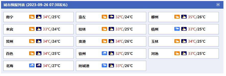 廣西氣象臺(tái)26日05時(shí)發(fā)布預(yù)報(bào):