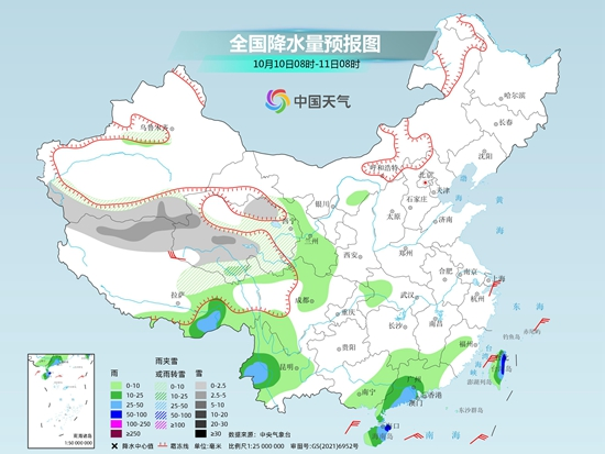明天,新疆南疆盆地、西藏北部、青海東部和南部、川西高原北部等地部分地區(qū)有小到中雪或雨夾雪;西藏東南部、云南西部、廣東西南部、海南島、臺(tái)灣島大部等地部分地區(qū)有中到大雨,其中,海南島東北部、臺(tái)灣島北部和東部等地部分地區(qū)有暴雨。