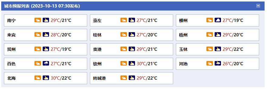 廣西氣象臺(tái)13日05時(shí)發(fā)布預(yù)報(bào):