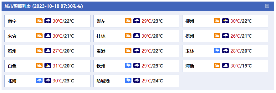 廣西氣象臺(tái)18日05時(shí)發(fā)布預(yù)報(bào):