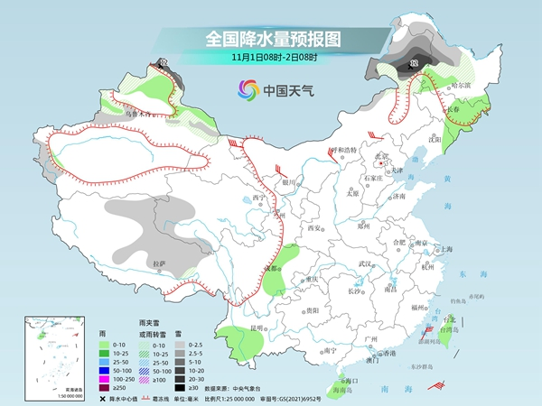 中央氣象臺(tái)預(yù)計(jì),今天,內(nèi)蒙古東部、黑龍江西北部、新疆北部和西部、西藏北部和東部、青海西部等地部分地區(qū)有小到中雪或雨夾雪,其中,新疆阿勒泰地區(qū)、內(nèi)蒙古東北部等地局地有大到暴雪;黑龍江西南部、吉林東部、遼寧東北部、新疆北部、四川中部、云南西南部、海南島、臺(tái)灣島等地部分地區(qū)有小雨。