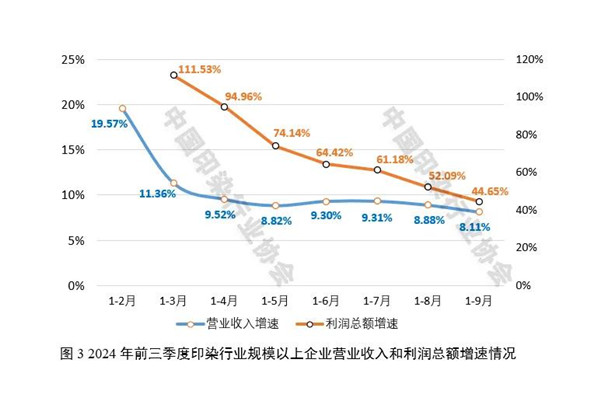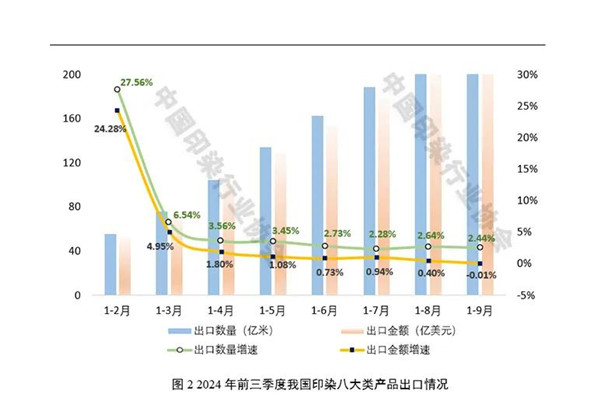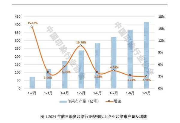 2024年以來(lái),世界經(jīng)濟(jì)增長(zhǎng)動(dòng)能不足、地緣政治沖突持續(xù)、國(guó)內(nèi)結(jié)構(gòu)調(diào)整不斷深化等帶來(lái)新挑戰(zhàn),但宏觀政策效應(yīng)持續(xù)釋放、新質(zhì)生產(chǎn)力加快發(fā)展等對(duì)我國(guó)國(guó)民經(jīng)濟(jì)平穩(wěn)運(yùn)行形成新支撐。前三季度,我國(guó)GDP同比增長(zhǎng)4.8%,增速居世界主要經(jīng)濟(jì)體前列,二、三季度國(guó)民經(jīng)濟(jì)運(yùn)行雖略有波動(dòng),但總體平穩(wěn)、穩(wěn)中有進(jìn)。在此背景下,我國(guó)印染行業(yè)延續(xù)恢復(fù)發(fā)展態(tài)勢(shì),前三季度印染布產(chǎn)量保持增長(zhǎng),主要印染產(chǎn)品出口規(guī)模繼續(xù)擴(kuò)大,主要經(jīng)濟(jì)運(yùn)行指標(biāo)呈現(xiàn)恢復(fù)向好態(tài)勢(shì),行業(yè)盈利能力大幅改善。同時(shí)也要看到,當(dāng)前國(guó)內(nèi)外市場(chǎng)需求仍顯不足,印染行業(yè)出口壓力逐步顯現(xiàn),主要經(jīng)濟(jì)指標(biāo)增速趨于放緩,行業(yè)虧損面依然偏高,不同企業(yè)盈利分化明顯,行業(yè)經(jīng)濟(jì)回升向好的基礎(chǔ)仍需進(jìn)一步牢固。