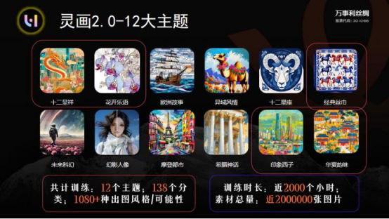 該模型基于超70萬件高精度花型數(shù)據(jù)庫,可自動生成1081種風(fēng)格組合,實現(xiàn)“10秒內(nèi)設(shè)計一條專屬絲巾”。用戶只需輸入關(guān)鍵詞或上傳靈感圖片,AI即可生成獨一無二的花型方案。其擁有的10的27次方超級算力,可以為全球80億人每人設(shè)計10萬條不重樣絲巾。