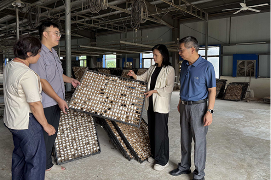 在廣西平果時宜農(nóng)業(yè)科技有限公司蠶桑產(chǎn)業(yè)(核心)示范區(qū),服務(wù)組詳細(xì)了解雄蠶新品種“桂蠶18號”“桂蠶19號”飼養(yǎng)情況,實(shí)地開展高產(chǎn)、優(yōu)質(zhì)種養(yǎng)配套技術(shù)指導(dǎo)。