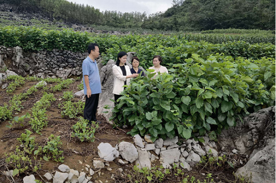 在馬頭鎮(zhèn)古念村,服務(wù)組實(shí)地考察石漠化地區(qū)桑園,就如何改良土壤提高地力、減少桑樹病蟲害發(fā)生,提高桑葉產(chǎn)量和質(zhì)量開展技術(shù)指導(dǎo)。
