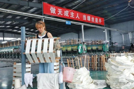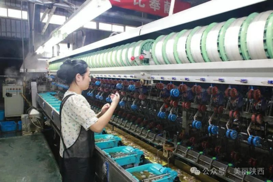 走進(jìn)陜西天成絲業(yè)的生產(chǎn)車間,從流水線煮繭到加工成絲,工人們忙碌地操作著各項(xiàng)工序。而在成品展廳,蠶絲被、蠶絲毯、蠶絲枕、男女裝睡衣等琳瑯滿目的蠶絲制品,吸引著全國各地的客戶前來選購。