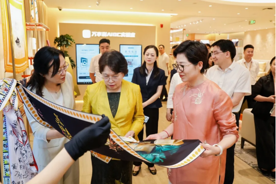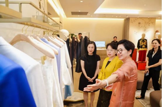 調研中,黃曉薇書記詳細了解萬事利在科技創(chuàng)新領域的突破性成果。擁有70萬花型數據庫、300種算法的AI花型大模型,綠色無污染、2小時交付的活性免水洗印染一體機?!斑@些創(chuàng)新成果的背后,都有萬事利她力量的奉獻與智慧。”萬事利集團董事長屠紅燕介紹,作為創(chuàng)立之初就根植女性基因的企業(yè),目前集團女員工占比57%,二孩及以上員工占比20%。在各級婦聯以及公司創(chuàng)新平臺的培育下,涌現出全國三八紅旗手、省級巾幗建功標兵等優(yōu)秀女職工代表,萬事利絲綢設計研發(fā)中心榮獲“全國五一巾幗標兵崗”,展現了“巾幗工匠”在科技創(chuàng)新中的關鍵作用。