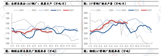 需求方面,下游焦化企業(yè)開工逐步提升,焦炭(2232, -47.00, -2.06%)連續(xù)提漲焦化利潤(rùn)修復(fù),疊加下游鋼廠補(bǔ)庫(kù)需求較好,開工有進(jìn)一步提升可能;鋼廠近期由于鋼價(jià)上漲,普遍盈利較好,鐵水保持高位,目前247家樣本鋼廠鐵水產(chǎn)量仍處于240萬(wàn)噸/日水平,給予原料需求支撐。