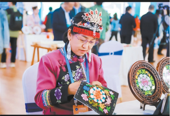朱二奴展示河湟刺繡技藝
