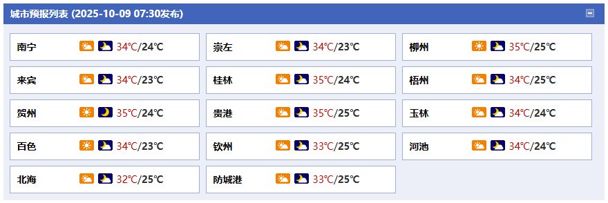 未來三天,桂東北最高氣溫33~35℃、局地37℃以上。