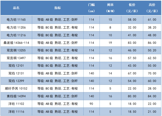本周綢緞指數(shù)協(xié)作單位成交價(jià)格區(qū)間
