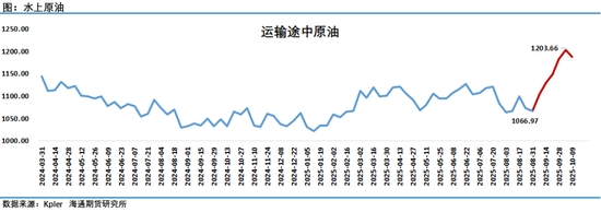 EIA已經(jīng)率先公布了10月份能源市場(chǎng)展望,總結(jié)就是供應(yīng)過(guò)剩壓力進(jìn)一步增加,但是油價(jià)下跌空間略有上移(在中美經(jīng)貿(mào)摩擦升溫后這一預(yù)期可能要再次下調(diào)),接下來(lái)的一周歐佩克、國(guó)際能源是等將陸續(xù)公布其9月份月報(bào),此前根據(jù)彭博調(diào)查數(shù)據(jù)顯示,9月0PEC產(chǎn)量環(huán)比增加40萬(wàn)桶/日,主要由沙特增32萬(wàn)桶/日貢獻(xiàn),0PEC+增產(chǎn)8國(guó)中的伊拉克、科威特、阿聯(lián)酋并未貢獻(xiàn)增量,不過(guò)隨著伊拉克庫(kù)區(qū)石油出口于9月末重啟,其10月產(chǎn)量有望重回增加。此外,委內(nèi)瑞拉、伊朗、利比亞在9月分別貢獻(xiàn)了8萬(wàn)桶/日、4萬(wàn)桶/日、4萬(wàn)桶/日的環(huán)比增量,委內(nèi)瑞拉產(chǎn)量達(dá)到了100萬(wàn)桶/日。根據(jù)彭博數(shù)據(jù)自4月以來(lái)沙特自己用了半年保質(zhì)保量的完成了100萬(wàn)桶/日產(chǎn)量的回歸,而歐佩克減產(chǎn)國(guó)半年合計(jì)增產(chǎn)155萬(wàn)桶/日。實(shí)際給原油市場(chǎng)帶來(lái)供應(yīng)增量明顯,根據(jù)Klper統(tǒng)計(jì)OPEC+海運(yùn)出口9月增加逾110萬(wàn)桶/日,其中沙特+74.3萬(wàn)桶/日,伊朗+33.2萬(wàn)桶/日。9月中旬美國(guó)原油出口升至近500萬(wàn)桶/日,為2024年3月以來(lái)最高。美國(guó)原油凈進(jìn)口量已經(jīng)低至100-200萬(wàn)桶/日,這也能解釋為什么美國(guó)原油庫(kù)存近期沒有大幅累庫(kù)壓力,另外值得注意的是根據(jù)Klper跟蹤時(shí)隔7個(gè)月后,美灣原油重新流向中國(guó),10月裝船VLCC預(yù)計(jì)達(dá)33.5萬(wàn)桶/日。數(shù)據(jù)顯示9月以來(lái)水上運(yùn)輸途中的原油大幅增長(zhǎng)超1.3億桶,龐大的增量遠(yuǎn)超上半年的高位,這意味著后續(xù)到港后會(huì)給原油市場(chǎng)帶來(lái)大量的顯性庫(kù)存。