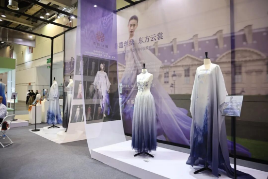 作為江蘇老字號品牌,繡娘絲綢以“皇家國韻”、“華夏蘭繡”和非遺大師合作等高定系列及創(chuàng)新非遺作品矩陣亮相,在“非遺絲繡·東方云裳”主題展上,以傳承與創(chuàng)新的匠心作品,盡顯品牌守正創(chuàng)新的內核,為來賓呈現(xiàn)了中國千年絲繡的當代煥新。