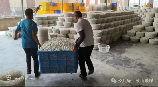 10月10日,記者走進(jìn)蒙山縣新圩鎮(zhèn)的蠶繭收購點(diǎn)看到,蠶農(nóng)們陸續(xù)將新鮮采收的蠶繭運(yùn)到這里按斤售賣,收購點(diǎn)內(nèi)堆滿了一筐筐飽滿雪白的蠶繭。
