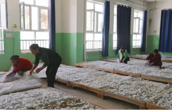 落地以來,公司采用傳統(tǒng)人工養(yǎng)殖模式,從2024年起陸續(xù)在普恰克其鎮(zhèn)、奎牙鎮(zhèn)種下700余畝桑樹苗,通過科學(xué)砍伐桑條、采摘桑葉,構(gòu)建起“桑-蠶”閉環(huán)產(chǎn)業(yè)鏈。養(yǎng)殖期內(nèi),公司每月可培育兩批桑蠶,每批養(yǎng)殖規(guī)模達(dá)100余張,產(chǎn)業(yè)規(guī)模穩(wěn)步擴大。