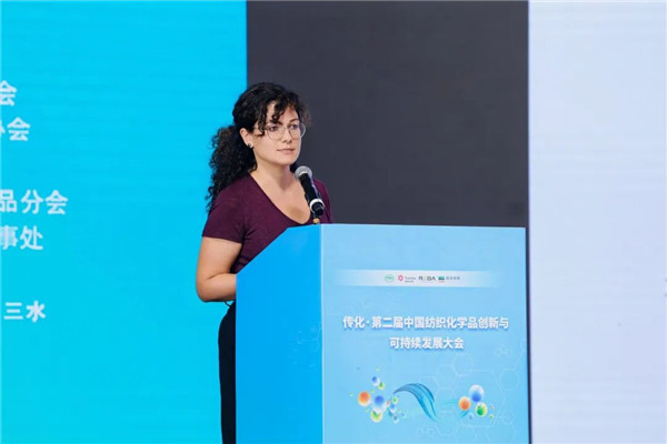 Tanatex Chemicals產(chǎn)品技術(shù)部經(jīng)理Tugce Tokat在會上分享了兩個可持續(xù)發(fā)展案例。一是環(huán)保前處理劑,公司應(yīng)客戶要求開發(fā)出無磷、高生物基含量的新產(chǎn)品,該方案使客戶用水量降低約40%,化學(xué)品消耗減少20%—40%,同時改善了織物品質(zhì)和廢水處理效果。二是研發(fā)中的無氟整理劑,為滿足客戶對防水和防污的雙重需求,這款新產(chǎn)品無需含氟化學(xué)品,在更低溫度下即可達(dá)到優(yōu)異的防水效果,并且僅用清水擦拭就能去除咖啡、紅酒等污漬,性能超越傳統(tǒng)方案。這兩個案例表明,從客戶需求出發(fā)、遵循可持續(xù)發(fā)展理念的技術(shù)創(chuàng)新,能同時實現(xiàn)商業(yè)價值和環(huán)保效益。