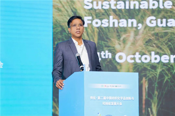 Archroma印染助劑與數(shù)碼印花事業(yè)部全球營銷總監(jiān)Sachin Nigam以“基于紡織化學(xué)品從源頭到末端構(gòu)建印染行業(yè)完整生態(tài)鏈條”為題展開分享。他指出,當(dāng)前紡織行業(yè)面臨耗水量大、碳排放量大、產(chǎn)品生命周期短、化學(xué)品管理復(fù)雜等痛點,基于“生態(tài)鏈”理念,昂高公司從可持續(xù)應(yīng)用與綠色制造、產(chǎn)品生命周期末端考量、原材料采購等方面構(gòu)建了一套完全整合的可持續(xù)解決方案。通過ONE WAY計算工具實現(xiàn)可衡量的資源節(jié)約與生產(chǎn)力提升,通過SAFE EDGE數(shù)字平臺可全天候訪問產(chǎn)品監(jiān)管和合規(guī)信息。最后他還介紹了公司研發(fā)的NTR生物基涂料印花系統(tǒng)相較于傳統(tǒng)涂料印花工藝的核心優(yōu)勢。