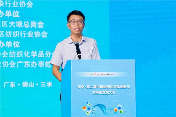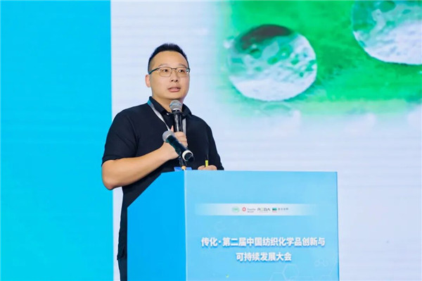 傳化智聯(lián)股份有限公司紡化業(yè)務(wù)副總裁、全球應(yīng)用技術(shù)總工程師金澤作“基于科技創(chuàng)新,助力紡織印染行業(yè)可持續(xù)發(fā)展”報告,公司聚焦印染全過程,成功開發(fā)了多項節(jié)能降耗關(guān)鍵技術(shù):在前處理環(huán)節(jié),創(chuàng)新應(yīng)用低溫低堿技術(shù),顯著縮短流程并減少了水耗與化學(xué)品使用;在染色環(huán)節(jié),推出高效“染色三件套”方案,實現(xiàn)染色后無需水洗,大幅提高生產(chǎn)效率;同時,配套的低溫?zé)晒庠霭讋┮灿行Ы档土四芎摹T谔嵘a(chǎn)品附加值方面,公司布局了無氟防水、聚氨酯硅油、水分管理等復(fù)合功能整理技術(shù),并針對數(shù)碼印花、萊賽爾纖維等提供了全鏈路解決方案。
