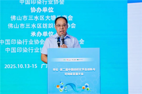 他指出,三水作為廣東重要的紡織印染產(chǎn)業(yè)集聚地,始終把紡織印染產(chǎn)業(yè)作為重點培育的特色產(chǎn)業(yè),現(xiàn)已集聚規(guī)模以上企業(yè)超 105 家,年產(chǎn)值超200 億元,從業(yè)人員超 1.3 萬人,逐步形成了體系完善、鏈條完整的紡織產(chǎn)業(yè)集群和綠色循環(huán)經(jīng)濟(jì)體系。2025年,三水區(qū)出臺并實施了紡織印染產(chǎn)業(yè)煥新三年行動方案,以“時尚化、高端化、品牌化、數(shù)智化、低碳化、國際化”為導(dǎo)向,全力推動全區(qū)紡織印染產(chǎn)業(yè)邁向價值鏈中高端。希望以此次大會為紐帶,三水能與產(chǎn)業(yè)鏈企業(yè)、專家學(xué)者等建立更深層次、更廣領(lǐng)域、更高水平的友好合作,三水將始終秉持“企業(yè)有所需、政府有所應(yīng)”服務(wù)宗旨,全力打造最優(yōu)營商環(huán)境和最具活力的產(chǎn)業(yè)生態(tài),為企業(yè)發(fā)展保駕護(hù)航,共同打造全國紡織化學(xué)品創(chuàng)新與可持續(xù)發(fā)展的示范高地。