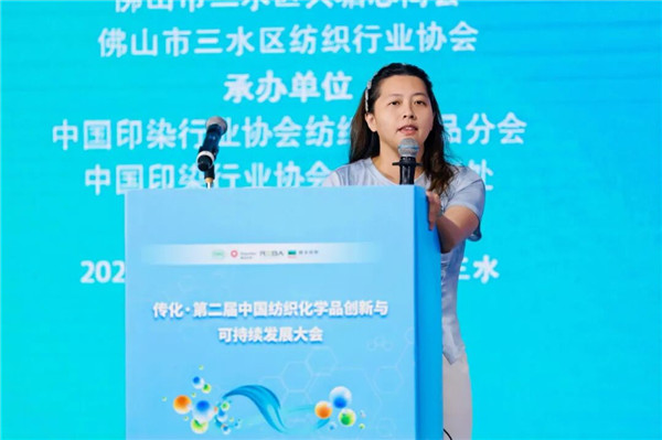 寧波潤禾高新材料科技股份有限公司研發(fā)總監(jiān)楊振以“潤澤經(jīng)緯 禾沐未來——潤禾材料印染高效低碳整體解決方案”為題展開分享。他指出,公司針對行業(yè)發(fā)展的新趨勢、新需求進(jìn)行新產(chǎn)品的研發(fā),目前已開發(fā)的綠色印染助劑主要涵蓋有機(jī)硅原油系列、非硅柔軟劑系列、前處理染色助劑系列、防水防油系列等。他通過詳細(xì)案例介紹了前處理染色助劑、有機(jī)硅后整理劑、蠟乳液、軟片、防水劑等不同系列產(chǎn)品的應(yīng)用特點和生產(chǎn)工藝,為印染行業(yè)綠色低碳轉(zhuǎn)型提供解決方案。