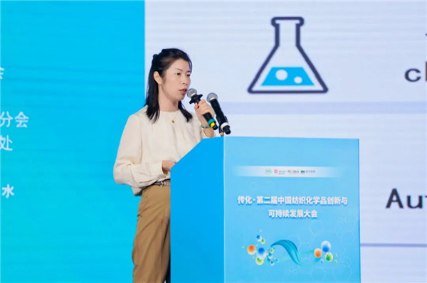 浙江濱康印染有限公司可持續(xù)發(fā)展部主管施青青以“化學(xué)品管理創(chuàng)新引領(lǐng)時尚產(chǎn)業(yè)永續(xù)發(fā)展”為題展開分享。她介紹了公司在化學(xué)品合規(guī)方面的創(chuàng)新實踐,在輸入端,遵守ZDHC MRSL的要求,建立化學(xué)品清單,追蹤所有染化料來源和使用,采用可再生纖維原料;在過程端,使用ZDHC Gateway等工具,啟動化學(xué)品管理系統(tǒng),篩查生產(chǎn)限用物質(zhì)清單,對生產(chǎn)過程和材料進(jìn)行質(zhì)量;在輸出端,加強(qiáng)監(jiān)測與監(jiān)管,對廢水和污泥有害物質(zhì)含量進(jìn)行檢測,定期盤倉檢查以維持持續(xù)合規(guī)。
