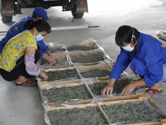 走進共育室,一股桑葉的清甜混著蠶寶寶的氣息撲面而來。十幾個竹制蠶匾整齊排列,數(shù)萬條乳白色的蠶寶寶正“埋頭苦干”,啃食桑葉的沙沙聲匯聚成一片,仿佛在訴說豐收的喜悅。工人們端著剛采摘的桑葉均勻撒下,蠶寶寶們立刻簇擁上前,轉眼間就啃出一個個月牙形的缺口。再過8天,第12批小蠶將完成共育并順利發(fā)車。